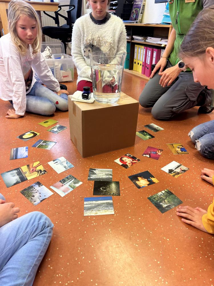 Drei Stunden täglich widmeten wir uns dem Thema Wasserschule und dabei erlebten wir ein wahres Abenteuer aus Theorie und Praxis. Caroline führte uns durch eine Vielzahl von Experimenten, die das Wasser in all seinen Facetten erlebbar machten. Von den unterschiedlichen Erscheinungsformen des Wassers bis hin zum individuellen Wasserverbrauch eines jeden von uns – kein Detail blieb unerforscht.