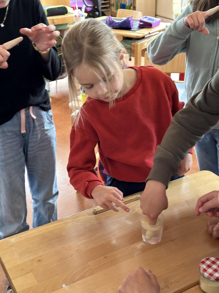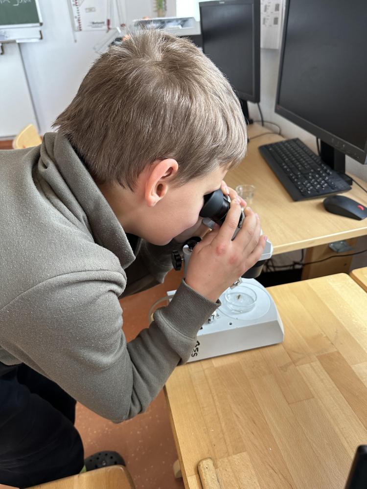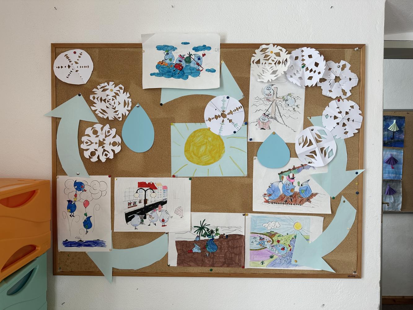 Wir bastelten Wasserkreisläufe, erschufen unseren eigenen Mini-Wasserkreislauf in Gläsern, wagten uns an eine Verkostung verschiedener Wasserarten und tauchten in das Thema Abwasser ein. Besonders spannend waren unsere Untersuchungen am Bach, bei denen wir eine Vielzahl von faszinierenden Wassertierchen entdeckten, die wir anschließend mikroskopierten.